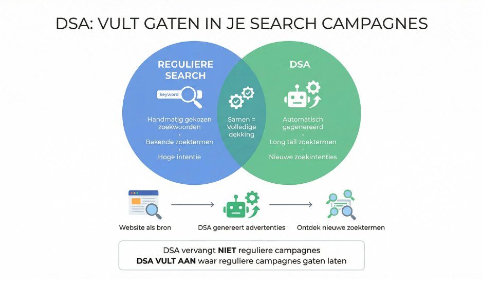 - DSA is geen standaardcampagne, maar een bewuste strategische keuze.